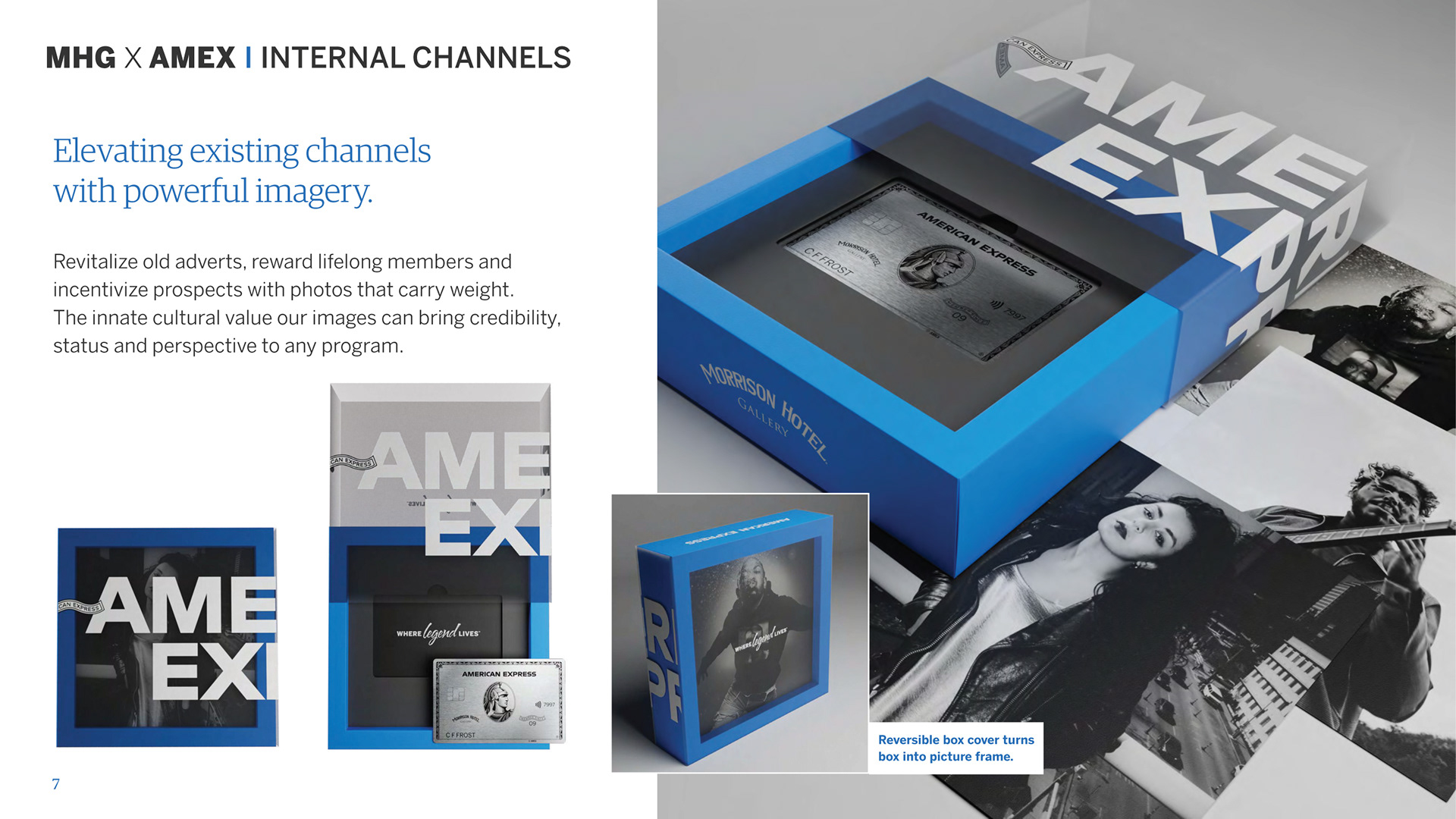 Morrison Hotel Gallery came to us to pitch their archive of photos to a few heavy hitters including American Express. We took aim at reimagining their iconic slogan "Don't do business without it" to make new Platinum card holders feel like they were living in the footsteps of legends.